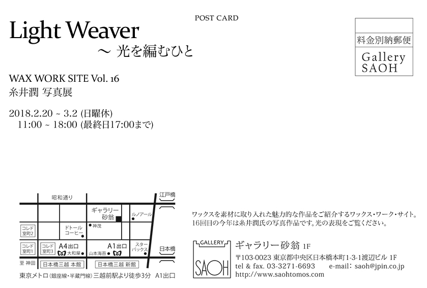 この週末2日間、午後は在廊しています。午前にいろいろ見たいギャラリーを回る予定ですので、その前にどこかでお会いしますでしょうか。